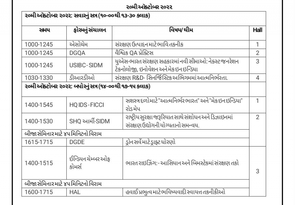 કેન્દ્રીય રક્ષા મંત્રાલય દ્વારા યોજાનાર DefExpo ૨૦૨૨ અંતર્ગત ગાંધીનગર અને અમદાવાદ ખાતે તા. 18 થી 22 ઓક્ટોબર 2022 દરમિયાન વિવિધ કાર્યક્રમોનું આયોજન કરવામાં આવ્યું છે.આ એક્સપો અંતર્ગત સાબરમતી રિવર ફ્રન્ટના પૂર્વ કાંઠે જાહેર જનતા માટે પ્રદર્શન જોવા જરૂરી સૂચનાઓ જાહેર કરાઈ છે.આ મેગા સંરક્ષણ અંગેના પ્રદર્શનમાં જમીન,હવાઈ,નૌકા અને માતૃભૂમિની સુરક્ષા પ્રણાલી પર ધ્યાન કેન્દ્રિત કરવામાં આવશે.આ સેમિનારમાં સંરક્ષણક્ષેત્રે વ્યાપકપણે નિકાસ,ફાઇનાન્સિંગ,ડિફેન્સ સ્ટાર્ટ-અપ્સ અને MSMEsમાં રોકાણ,એરોસ્પેસ ઉત્પાદન અને MROમાં MSMEની ઉભરતી ભૂમિકા,સંરક્ષણ રિસર્ચ એન્ડ ડેવલપમેન્ટમાં આત્મનિર્ભરતા,હવાઈ પ્રભુત્વ માટે ભવિષ્યવાદી સ્વાયત્ત ટેકનોલોજી જેવા વિવિધ વિષયો આવરી લેવામાં આવશે.સેમિનારમાં સંરક્ષણ અને એરોસ્પેસ ક્ષેત્રના આંતરરાષ્ટ્રીય અને રાષ્ટ્રીય નિષ્ણાતો વિવિધ વિષયો પર ચર્ચા વિમર્શ કરશે.ગાંધીનગર ખાતે આયોજિત આ સેમિનારની વિગતો DefExpo22 વેબસાઇટ અને મોબાઇલ એપ પર પણ ઉપલબ્ધ છે.આ સેમિનાર મહાત્મા મંદિર કન્વેન્શન અને એક્ઝિબિશન સેન્ટર ગાંધીનગર ખાતે હાઇબ્રિડ ફોર્મેટમાં સેમિનાર અગ્રણી ઉદ્યોગ સંગઠનો,થિંક ટેન્ક,ભારતીય સંરક્ષણ જાહેર ક્ષેત્રની સંસ્થાઓ,સર્વિસ હેડક્વાર્ટર (SHQs), સંરક્ષણ સંશોધન અને વિકાસ સંગઠન (DRDO), ગુણવત્તા ખાતરીના મહાનિર્દેશાલય (DGQA), નાગરિક ઉડ્ડયન મંત્રાલય અને રાજ્ય મંત્રાલય તેમજ રાજ્ય સરકાર દ્વારા આયોજિત કરવામાં આવશે.જેમાં વક્તાઓ તેમજ શ્રોતાઓ વર્ચ્યુઅલી ભાગ લઇ શકશે.આ ઇવેન્ટ વિશ્વભરમાં સ્ટ્રીમ પણ કરવામાં આવશે.