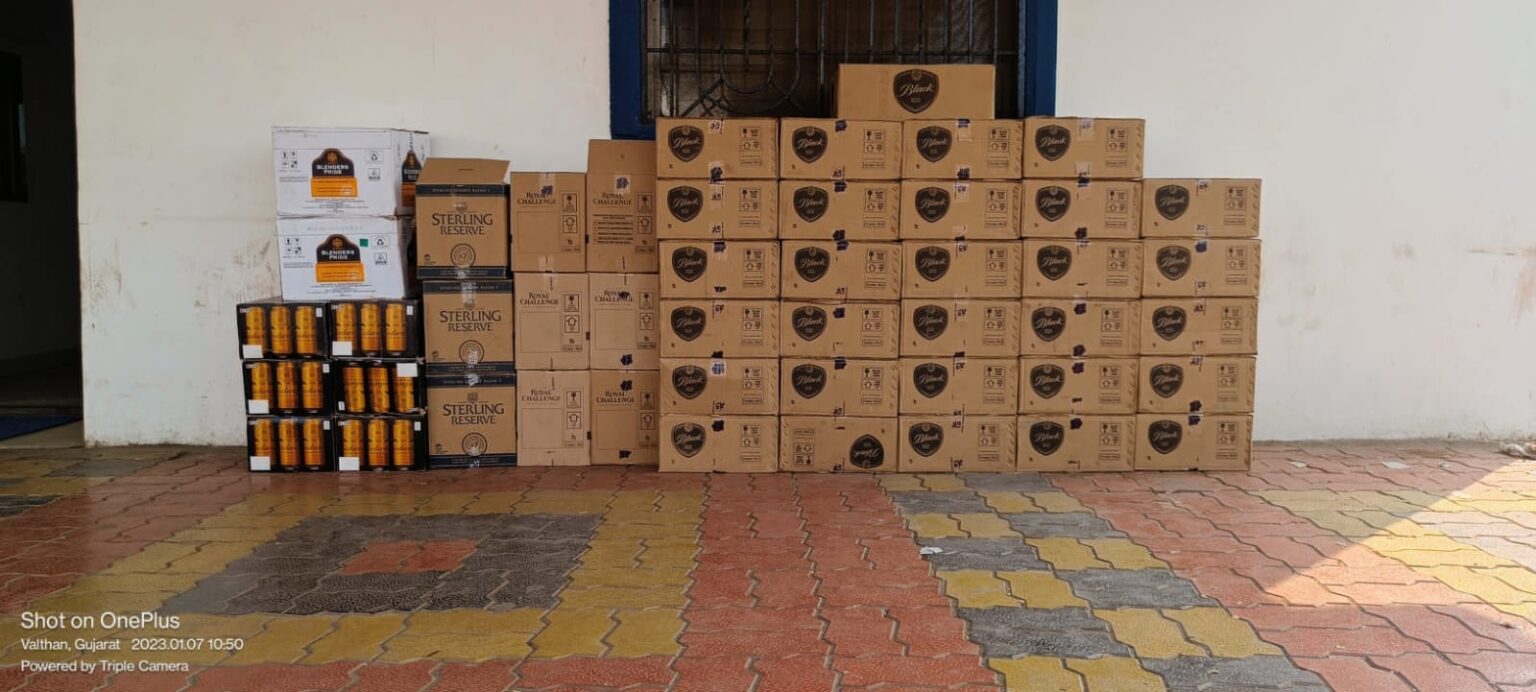 કઠોદરા ગામે બુટલેગરના મકાન અને કારમાંથી 3.73 લાખનો વિદેશી દારૂ ઝડપાયો