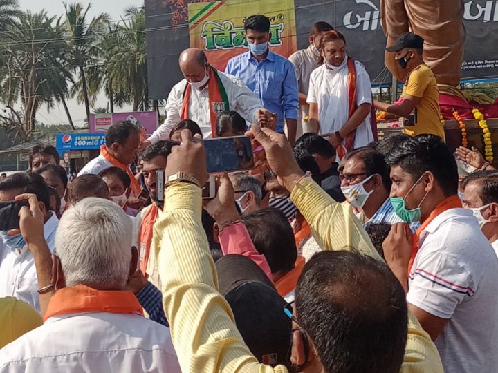 કહેવાતા કોરોના પ્રૂફ સી.આર પાટીલને બ્રહ્મજ્ઞાન લાદ્યું !! : વલસાડમાં હોલના ઉદ્દઘાટન બાદ સોશિયલ ડિસ્ટન્સિંગના ધજાગરા ઉડતા ભાજપના પ્રદેશ પ્રમુખ મંચ પર જ ન આવ્યા