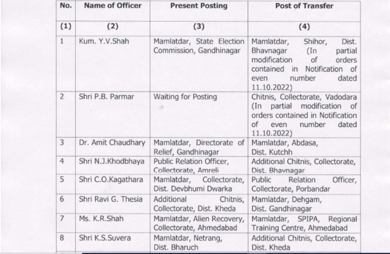ગાંધીનગરકે : ન્દ્રીય ચૂંટણી પંચ ગમે ત્યારે ગુજરાત વિધાનસભા ચૂંટણીની તારીખ જાહેર કરી શકે છે.જેની પહેલા રાજ્યના બ્યૂરોક્રેટ્સમાં મોટા ફેરફાર યથાવત જોવા મળી રહ્યો છે.થોડા દિવસ અગાઉ 23 IASની બદલીના આદેશ બાદ આજે રાજ્યના વધુ 2 IPS અધિકારી સહિત 23 મામલતદારોની બદલીના આદેશ આપવામાં આવ્યા છે.આ અંગે પ્રાપ્ત વિગતો મુજબ, ગુજરાત ગૃહ વિભાગ દ્વારા 2 IPSની બદલીના ઓર્ડર કરવામાં આવ્યાં છે.જેમાં વિકાસ સુંદાને રાજ્યપાલના નવા ADC તરીકે નિમણૂંક આપવામાં આવી છે.જ્યારે દિપક મેઘાણીને લૉ એન્ડ ઑર્ડર SP- ગાંધીનગરમાં ટ્રાન્સફર કરવામાં આવ્યાં છે.બીજી તરફ રાજ્યના રેવન્યૂ ડિપાર્ટમેન્ટ દ્વારા 24 જેટલા મામલતદાર કક્ષાના 24 જેટલા અધિકારીઓની બદલીના ઓર્ડર કરવામાં આવ્યાં છે.