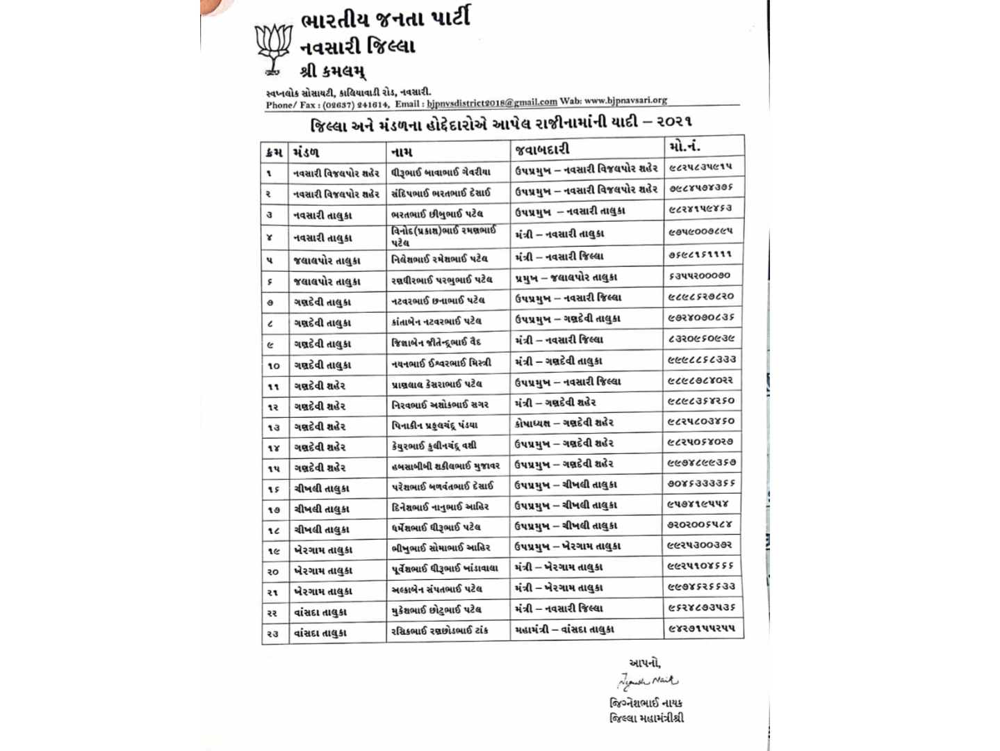 Hindustan Mirror > Gujarat Now > South Gujarat > નવસારી જિલ્લા ભાજપના 23 કાર્યકરોએ સંગઠનના હોદા પરથી રાજીનામા આપ્યા