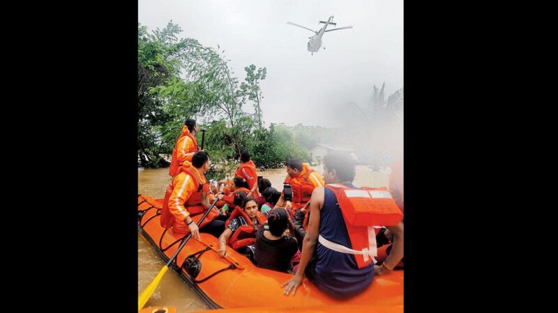 નવસારી જિલ્લામાં બીજા દિવસે પણ બચાવ અને રાહતકામગીરી યથાવત્,વિવિધ ગામોમાંથી ૮૧૧ લોકોને રેસ્ક્યુ કરી બચાવી લેવાયા દક્ષિણ ગુજરાતના નવસારી જિલ્લામાં ભારે વરસાદ અને પૂરની પરિસ્થિતિ બાદ ગઈ કાલે બીજા દિવસે પણ બચાવ અને રાહતકામગીરી યથાવત્ રહી હતી.પૂરનાં પાણી વચ્ચે બચાવકામગીરી માટે ગામમાં આવેલી નૅશનલ ડિઝૅસ્ટર રિસ્પૉન્સ ફોર્સ(એનડીઆરએફ)અને સ્ટેટ ડિઝાસ્ટર રિસ્પૉન્સ ફન્ડ(એસડીઆરએફ)ની ટીમોને જોઈને પૂરનાં પાણીમાં ફસાયેલા લોકોએ રાહતના શ્વાસ લીધા હતા.અતિભારે વરસાદને પરિણામે ગઈ કાલે નવસારી જિલ્લાનાં વિવિધ ગામોમાંથી ૮૧૧ લોકોને રેસ્ક્યુ કરાયા હતા.