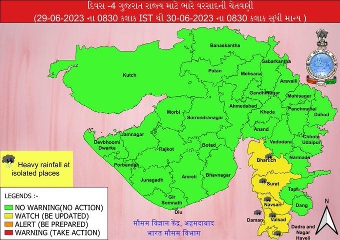 રાજ્યના 2 જિલ્લામાં રેડ અને ત્રણ જિલ્લામાં ઓરેન્જ એલર્ટ જાહેર