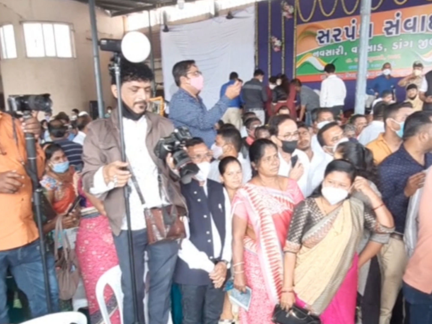 ભાજપ પ્રદેશ પ્રમુખ અને સાંસદ સીઆર પાટીલનો આજે સુરખાઈ ખાતે ‘સરપંચ સંવાદ’ કાર્યક્રમ યોજાયો હતો.આ કાર્યક્રમમાં નવસારી,વલસાડ અને ડાંગ જિલ્લાના સરપંચો ઉપસ્થિત રહ્યાં હતા.જોકે કાર્યક્રમ દરમિયાન ભાજપના પ્રદેશ પ્રમુખ અને સાંસદ સીઆર પાટીલ જનમેદની વચ્ચે માસ્ક વગર જોવા મળ્યા હતા તો બીજી તરફ સરપંચો પણ સોશિયલ ડિસ્ટન્સના નિયમો નેવે મુકી પાટીલ સાથે ફોટો ખેંચાવવા પડાપડી કરી રહ્યાં હતા.