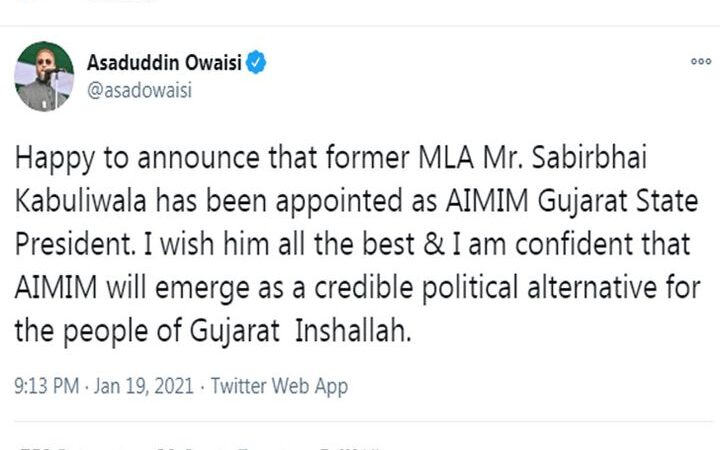 Previous Article ગુજરાતનું રાજકારણ ગરમાયું : AIMIMના અસદુદ્દીન ઓવૈસી 4 ફેબ્રુઆરીએ ગુજરાતમાં પગલાં પાડશે ,અમદાવાદ અને ભરૂચમાં ચૂંટણી પ્રચાર કરશે