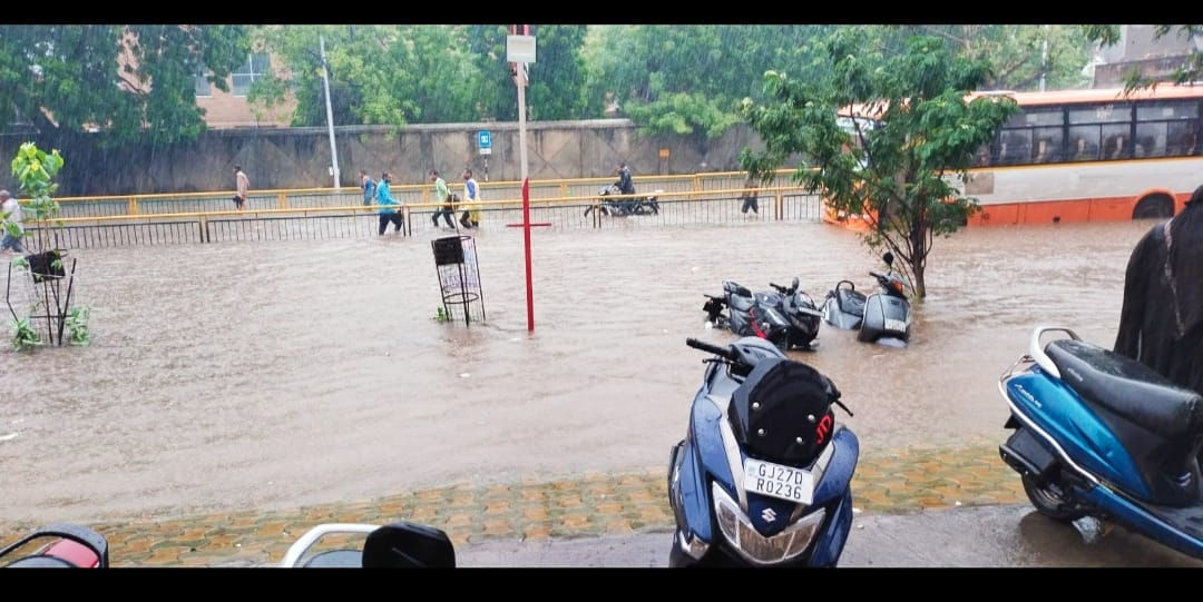 અમદાવાદ : સ્માર્ટ સિટી અમદાવાદમાં શુક્રવારે બપોરે વરસેલા ભારે વરસાદને પગલે જનજીવન ઉપર ભારે અસર જોવા મળી હતી.બપોરના એકથી લઈ ચાર સુધીના ભારેથી અતિભારે પડેલા વરસાદના કારણે જનજીવન બેહાલ બનેલું જોવા મળ્યુ હતું.પૂર્વથી લઈ પશ્ચિમ અને ઉત્તરથી લઈ દક્ષિણ સુધીના તમામ વિસ્તાર પાણીમાં ગરકાવ થતા મ્યુનિસિપલ કોર્પોરેશનના મોનસુન એકશન પ્લાન ઉપર વરસાદી બુલડોઝર ફરી વળ્યુ હતું.કયાંક મકાન તો કયાંક ગેલેરી ધરાશાયી થવાની ઘટના પણ બનવા પામી હતી.