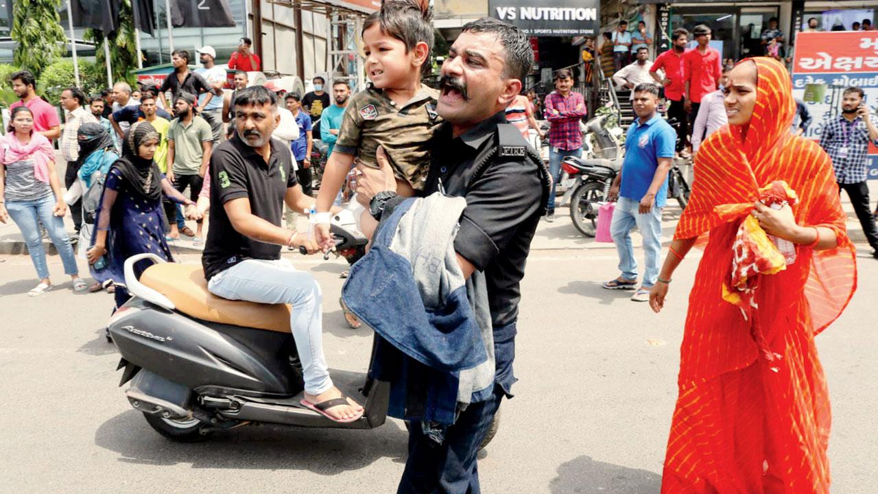 અમદાવાદમાં પરિમલ ગાર્ડન પાસેના કૉમ્પ્લેક્સમાં ગઈ કાલે બપોરે લાગેલી આગમાં ૧૩ બાળ દરદીઓ સહિત અંદાજે ૧૦૦ જેટલા લોકો માટે ફાયર જવાનો દેવદૂત બન્યા હતા.૧૫થી વધુ ફાયર ફાઇટર વેહિકલ સહિત ૭૦ જેટલા ફાયર ઑફિસરો અને જવાનો કૉમ્પ્લેક્સમાં ઉપરના ફ્લોર પર ફસાયેલા લોકોને બચાવવા માટે તેમને ટેરેસ પર લઈ ગયા અને ત્યાંથી સ્નૉર્કેલની મદદથી સહીસલામત નીચે ઉતાર્યા ત્યારે ફસાયેલા લોકોના જીવમાં જીવ આવ્યો હતો.આગને કારણે કૉમ્પ્લેક્સમાં ફસાયેલા અનેક લોકોના જીવ તાળવે ચોંટ્યા હતા અને નાસભાગ મચી ગઈ હતી.અમદાવાદના ચીફ ફાયર ઑફિસર જે.એન.ખડિયા ‘મિડ-ડે’ને કહ્યું હતું કે‘ગઈ કાલે બપોરે લગભગ સાડાબાર વાગ્યે પરિમલ ગાર્ડન પાસે આવેલા કૉમ્પ્લેક્સમાં આગ ફાટી નીકળી હતી.